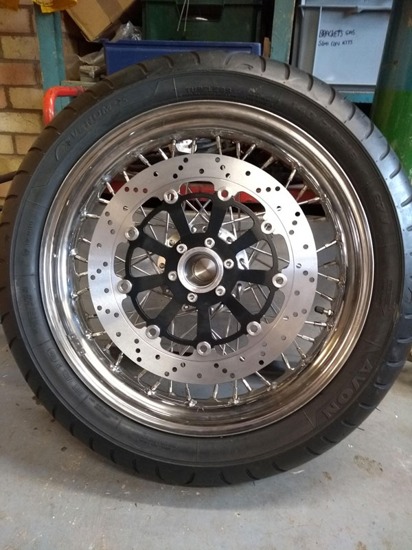 Whilst we're on the subject of brakes I couldn't resist posting a picture of the front wheel with disc attached...some serious brakes with this combination...