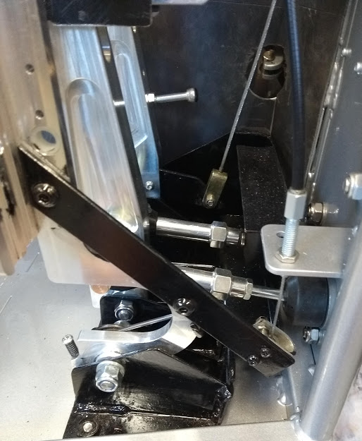 The clutch on the Type 3 is cable whereas the pedal box is designed for a hydraulic clutch - I got round this by fabricating a short lever arm and bolting it to the pedal shaft which fortunately, are rectangular bar sections. I got the dimensions for the arm length or throw from a Triking fabricated Type 3 pedal. I also had to make a hole in the upper part of the pedal box for the cable to run through.