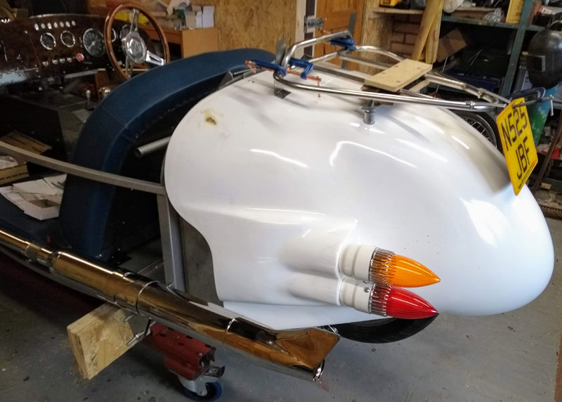 Continuing the work on the rear end I've started assembling the new tail section. The rear lights are repro Cadillac, sourced from the US and surprisingly well made compared with some of the repro stuff you get. They are quite vulnerable so are lightly bolted to the tail so they can be replaced if necessary.