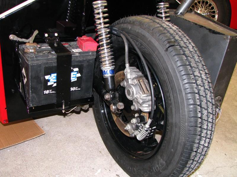 The glimpse of red in the picture is a 1959 TR3. It is in wonderful condition and now shares the garage with an E type going through a full restoration. He sold on the Triking to give more space for the task, luckily for me. His level of care and workmanship is simply amazing as is shown in my Triking.