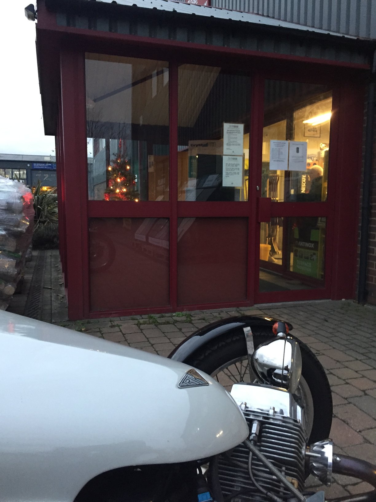 Closing times on the door at Henlow Building Supplies.