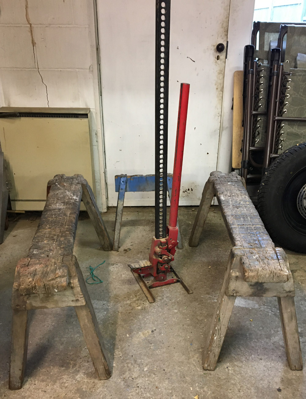 I built the car on some metal saw horses and that worked well except for getting it down. I would love to get it raised to that height again but have some easy, safe and quick way to do it.