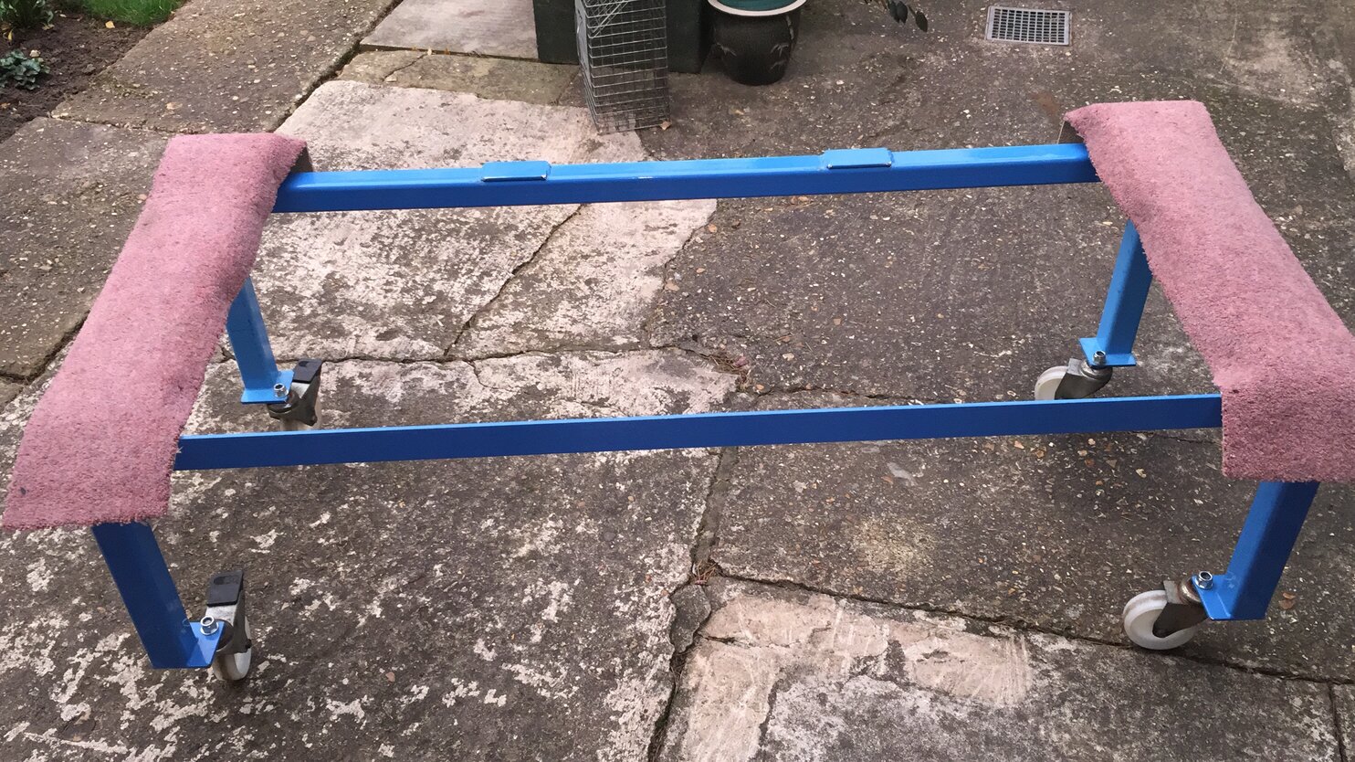 Return to rear with jack and lift up further to be able to slide under my wheeled build trolley.