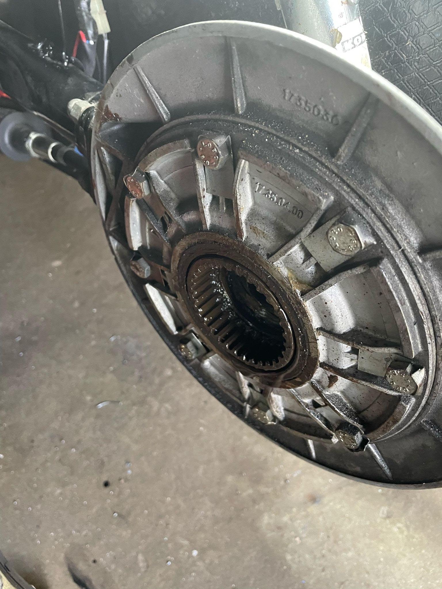 I have noticed that the space between the final drive and the swing arm is only 125mm(5”), it is no problem to squeeze the deflated tyre trough this space but the rim will be a problem.