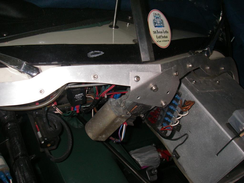 I think the main thing is to get the axis of the motor drive pointing in the same direction as the axes of the holes in the fiberglass for the wiper blade "spindles", which is pretty much guaranteed because the angle of the wiper support tab is designed to make this happen . I don't think the clock position of the motor is very important - just try and get the motor to a position where the hold down bolts are not too close to the edge of the tab. Then you just have to play around with the lengths of the two rods driving the wipers until everything seems to work properly, and in phase - easier said than done . Then when you switch on the wipers and watch the tab flex, it'll make your day