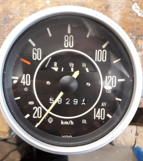 Have been thinking a lot about the speedometer and other meters, wanted something that included as much of the essentials as possible. Found a meter from an old Ford Transit with both fuel and temp guage but when it arrived it turn out to be too large. A 1970 Beetle was the solution, it has fuel gauge and all the needed lights. The speedometer will most likely be completely off but i plan on making a new dial anyway.