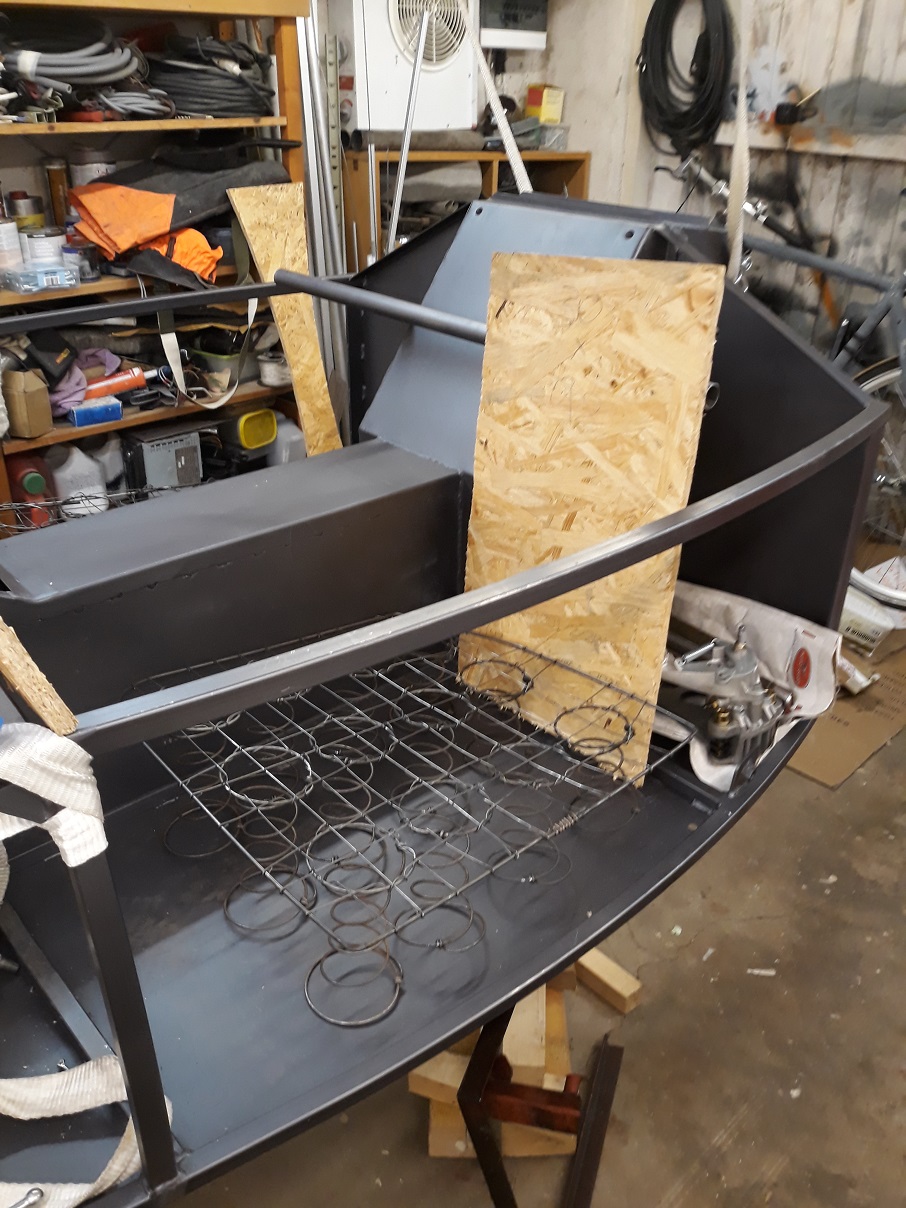 The seats started as the rear seat for a 197-something Saab 95. Still got a good spring in it and split in half it turned out quite good. Maybe something to cover with too.