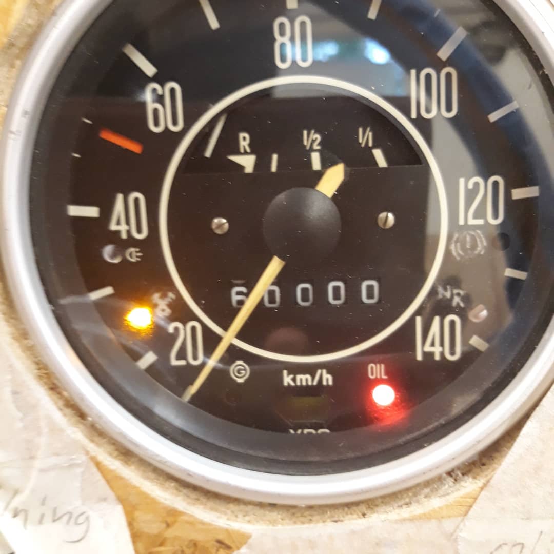 The speedometer was reset to nearest even number wirh a drill. And then it's just a matter of connecting all the little lights in the meter. Some of the functions i can reuse and some have to change. A indicator for Neutral / Reverse gear vill be a red/greed Led. A new meter front will be printed once i got it all figured out.