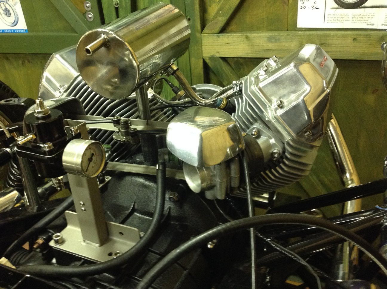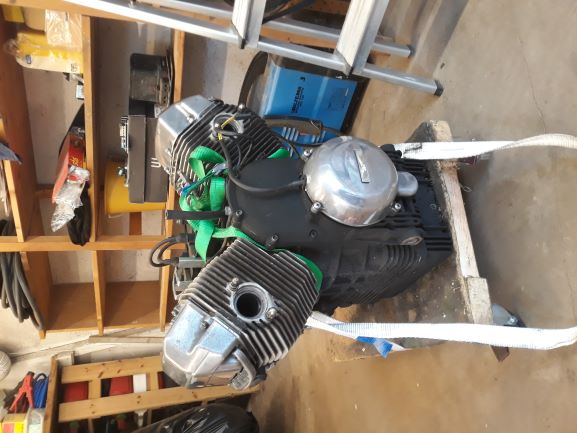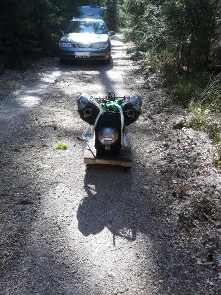 Beeing careful with my back i changed my plan to just lift the engine into the car and instead put it on i silly litte trolley and pulled it the last hundred meters. Once inside i could start cleaning it up and check all the parts. It was not cheap but counting what a used Guzzi here in sweden had cost (or one from abroad + shipping + paperwork) it was resonable.