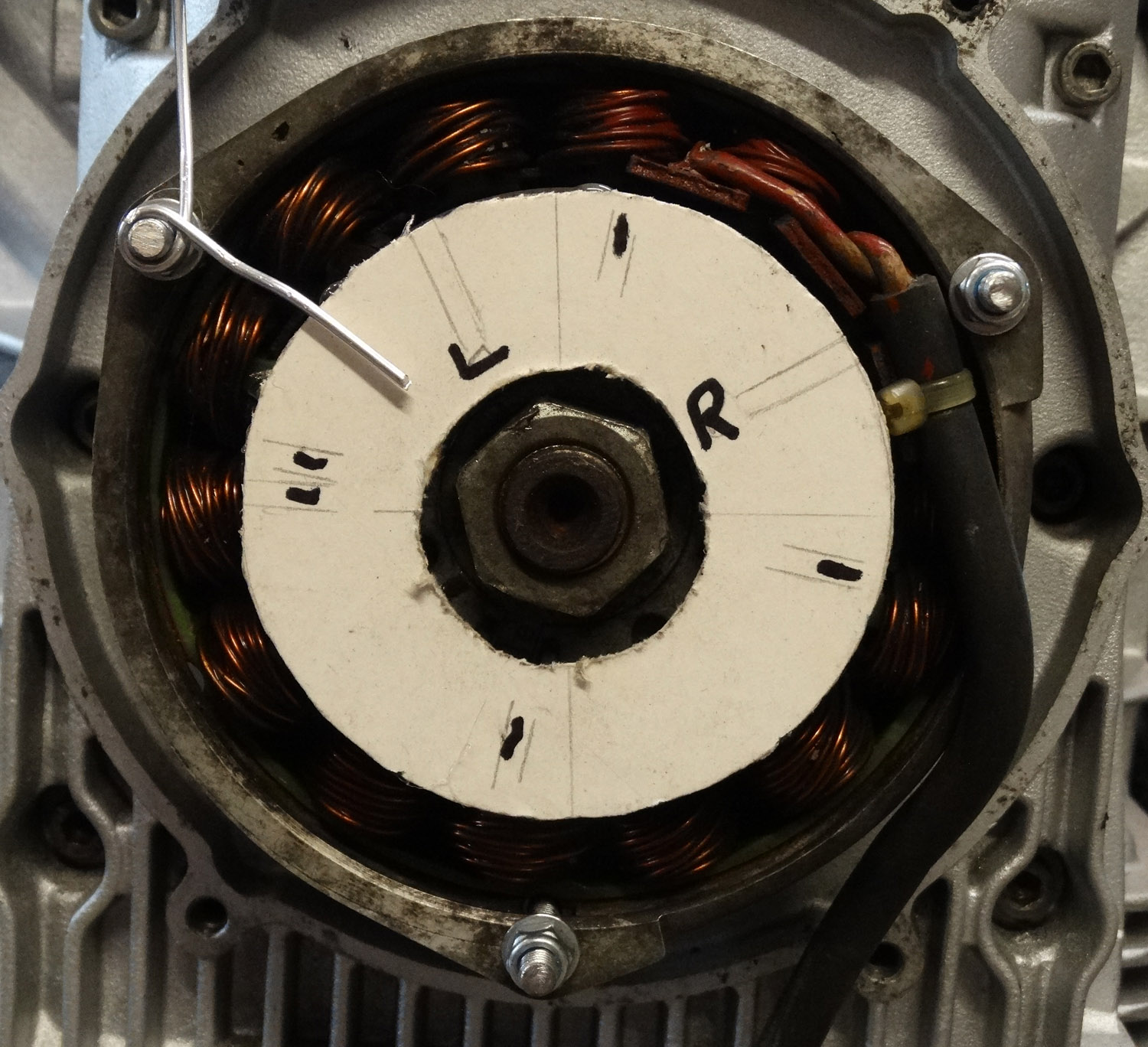 4. The R coil (marked on cardboard) is firing Lcyl approx 50deg before L tdc. It runs but only just, kicking back on startup.