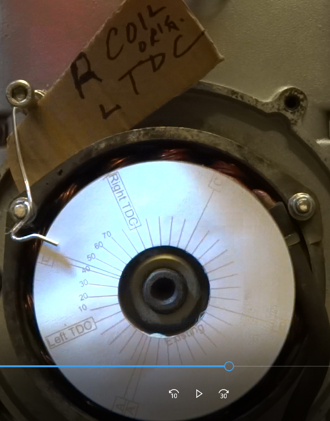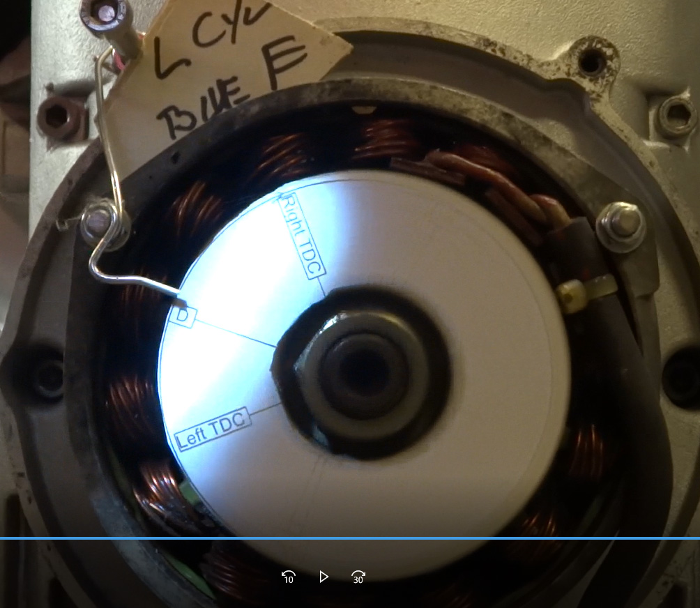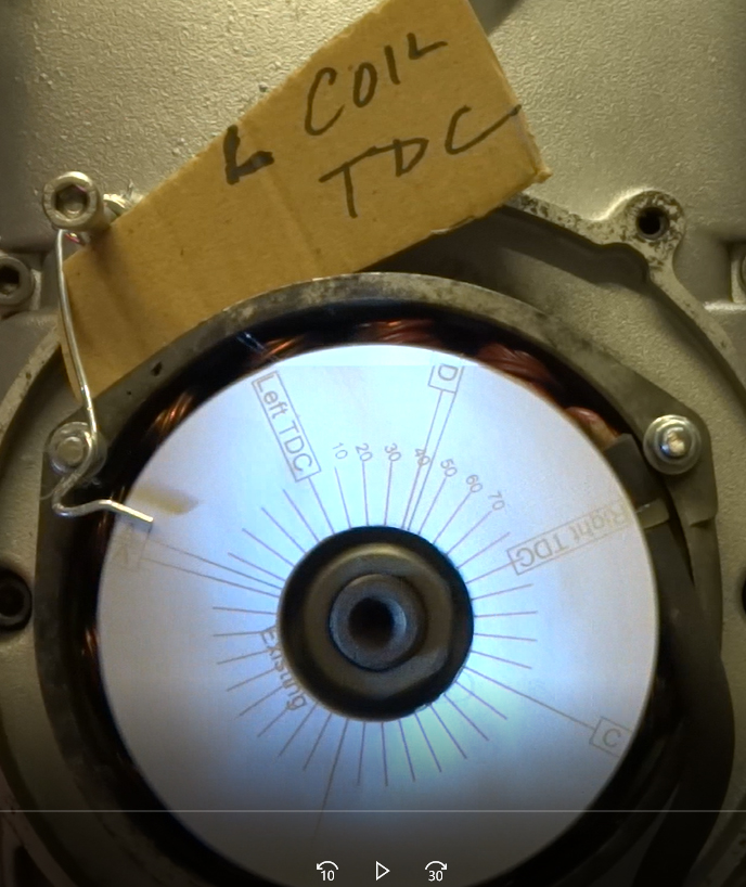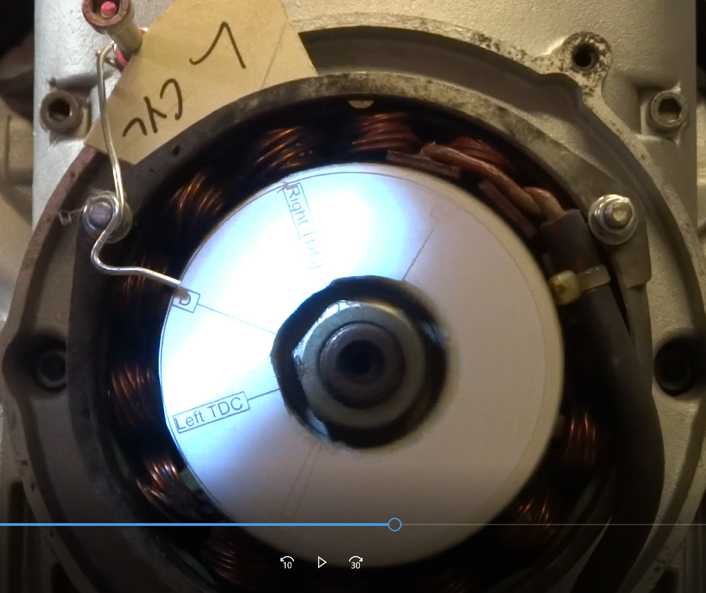Here's a video with timing disk pointer at Left tdc when left cyl was at tdc