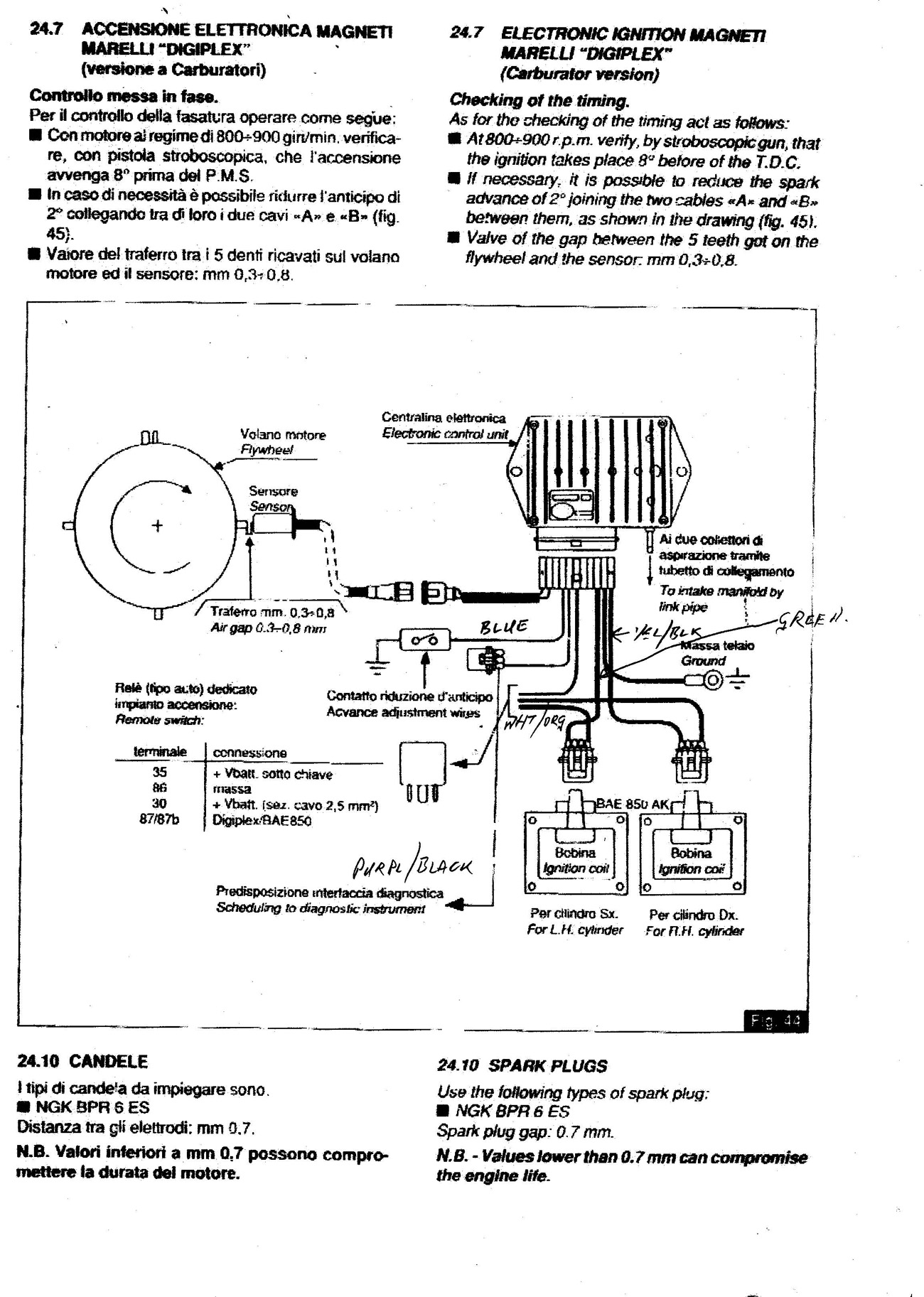 I would not have thought it would start at that setting. There is an extra wire from the control box for advancing ignition. This only seem to make 2deg difference when earthed out. This is the wiring circuit for the Digiplex.