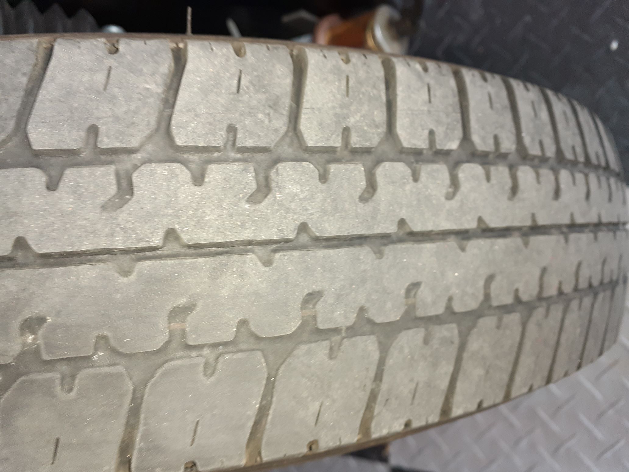 I have one of Alan's converted guzzi rear wheels with a car tyre. Firestone 145