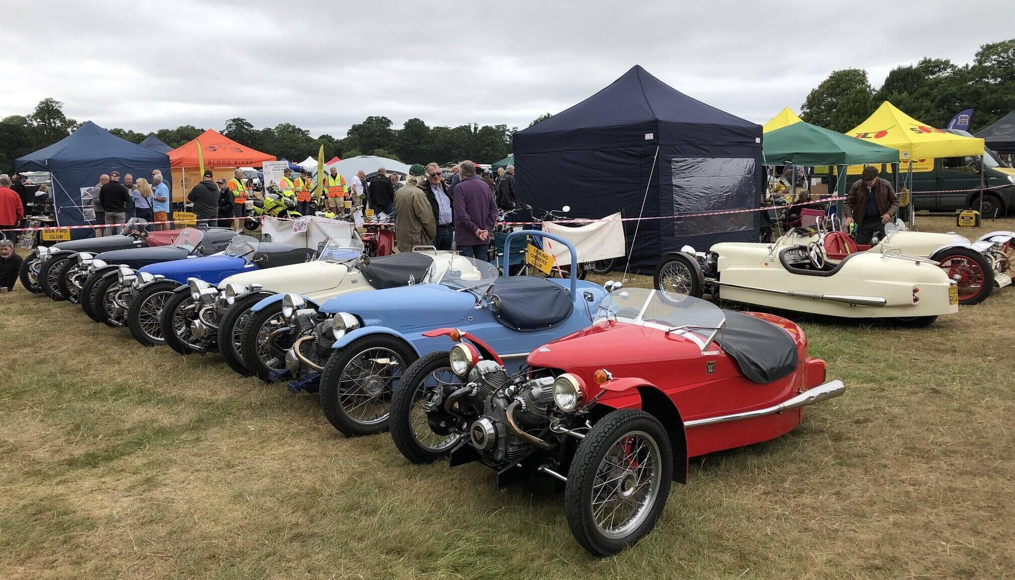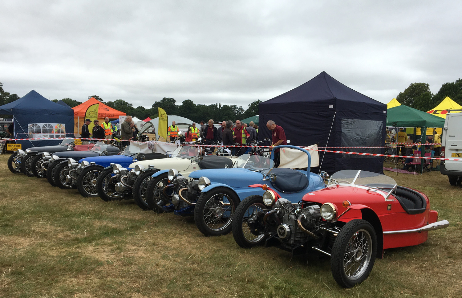 Good to see Trev Onions joining in with his very nicely finished JZR. Chris Keeling came along later by which time the organisers had given us more space. He and Trev are parked around the corner. In the front row my newly completed T3, Andrew F with his T3, Tony, T3 again, Paul in his very smart T2, I do like the colour combo, Ian with his newly completed T3 with Stuart and his T1 on the end.