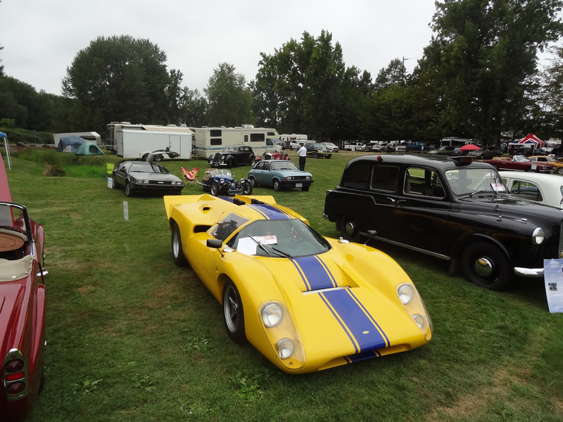 My Triking was placed in the post - 1980 "others" category, meaning cars out of the mainstream. We were located in the far corner of the grounds. There were only three cars in my category - my Triking, a DeLorean, and an Austin Allegro, which I'd never heard of before (not sure why the Lola wasn't in my category, but I'm glad it wasn't). The DeLorean got quite a bit of attention, mostly from kids because of "Back to the Future", my Triking also got some attention, but I was surprised how much attention the Allegro got, considering it's a very nondescript car. Looked it up on Wikipedia, and discovered that it was/is famous for being a lemon. Also discovered on Wikipedia that the DeLorean only has 40 more HP than my 90 HP Triking, but weighs 3X as much.